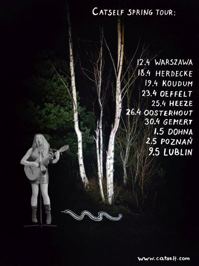 Catself rozpoczęła wiosenną trasę koncertem w Klubojadalni Młodsza Siostra w Warszawie. Wkrótce więcej koncertów w Niemczech, Holandii i w Polsce oraz występ online w jeszcze jednym kraju. Więcej informacji na ten temat tuż przed końcem miesiąca, tu i w mediach społecznościowych Catself.